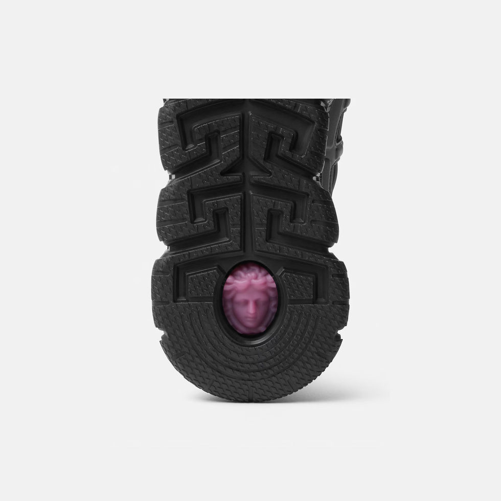 The Trigreca sneakers bring innovation to the brand's ever-evolving aesthetic. Featuring a gradient design, three-dimensional Greca executions on the soles offer an impactful landing with the "Greca Cushioning System." In a subtle nod to Versace's home city, the uppers have a discrete print of Milan's coordinates.